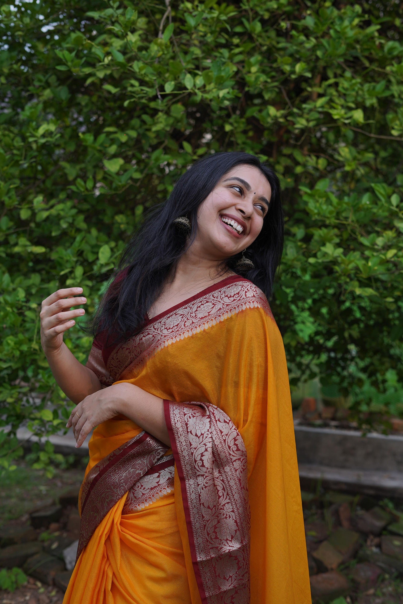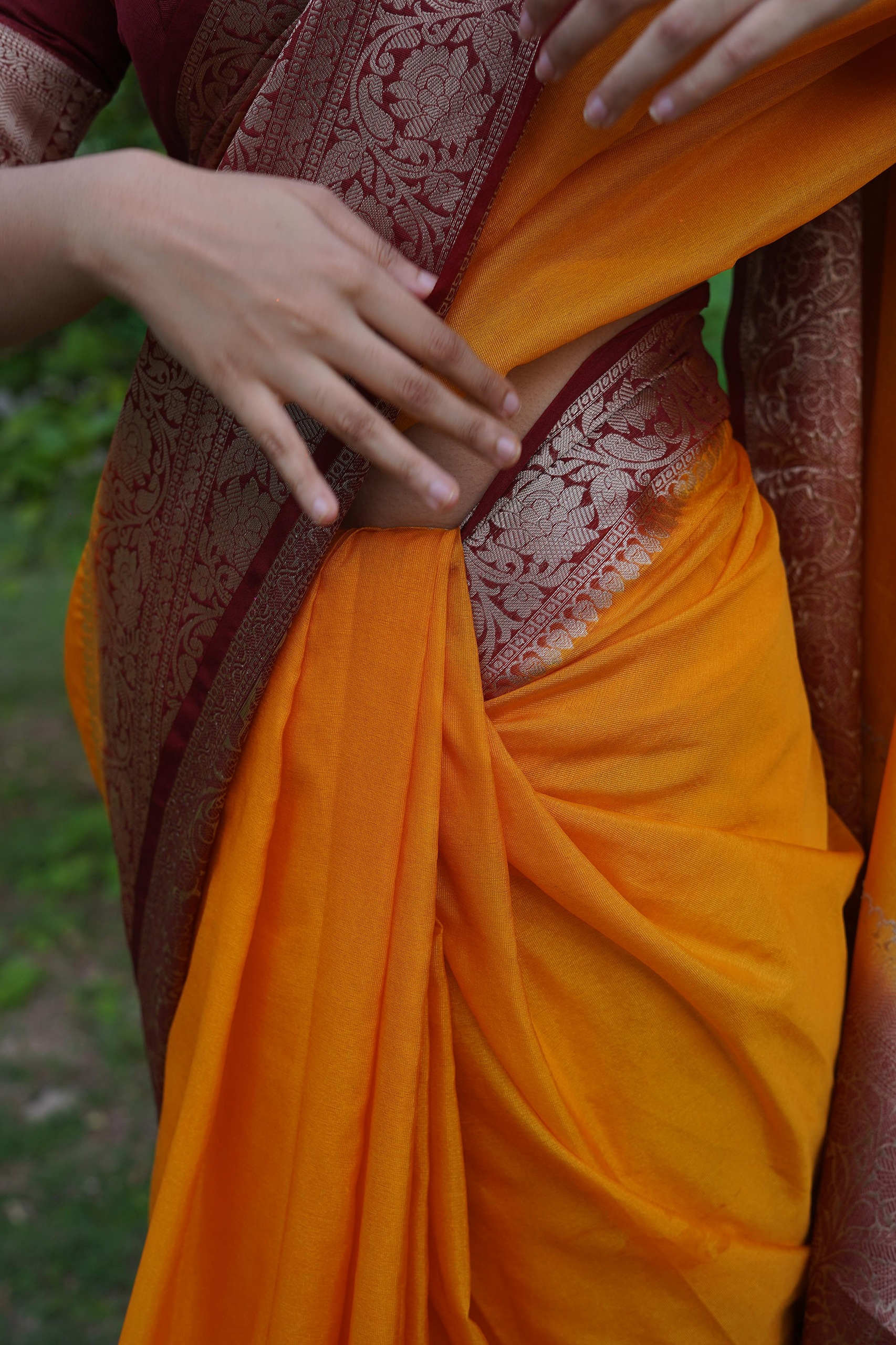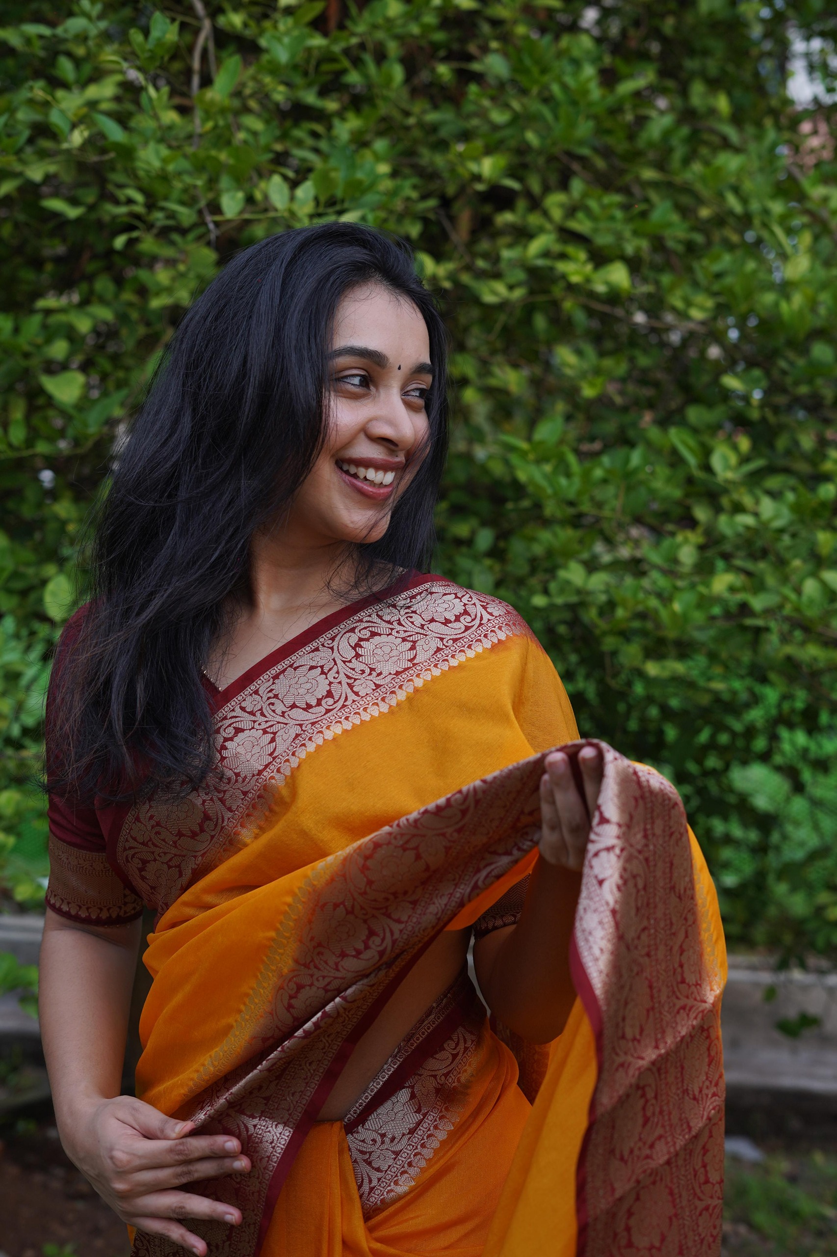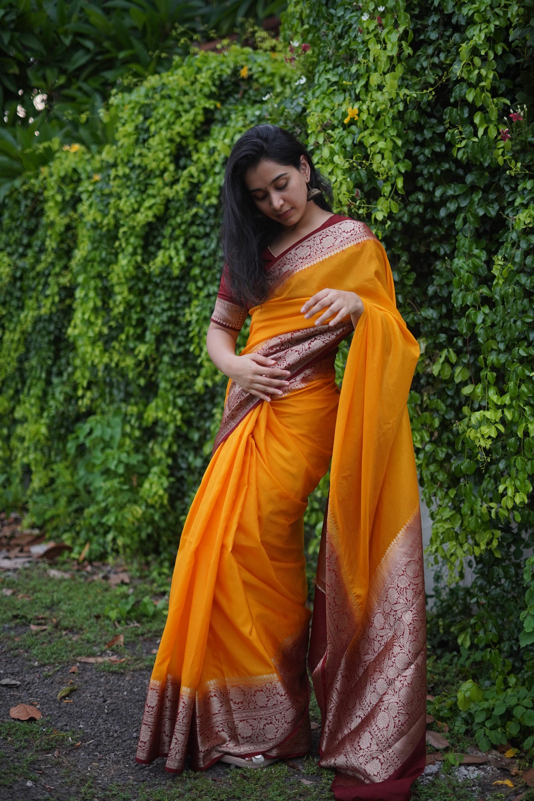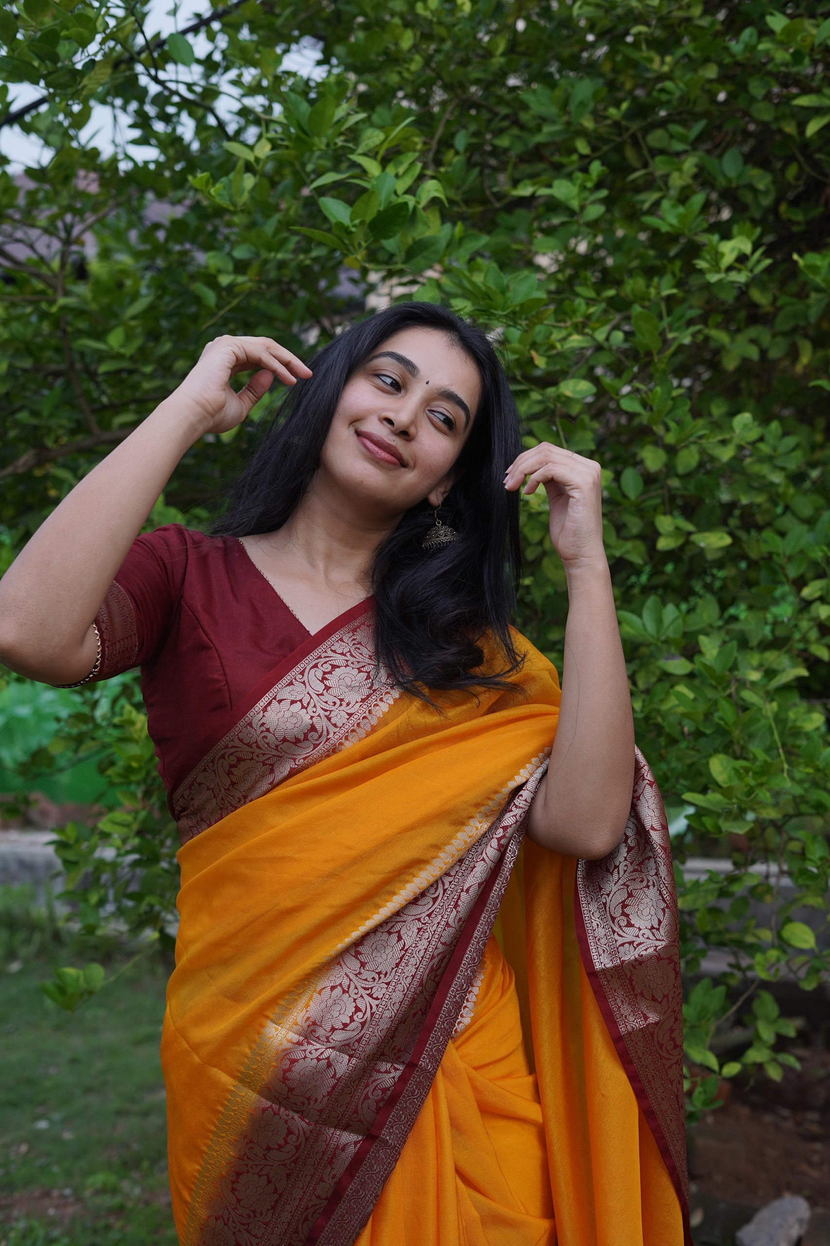 Banarasi Georgette Saree With Rich Pallu And Contrast Blouse With Border