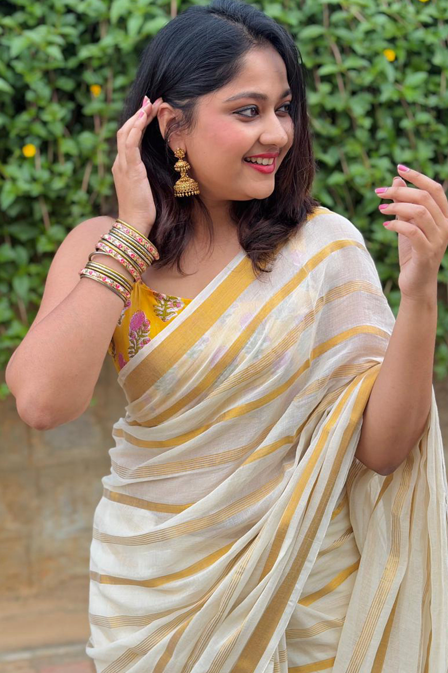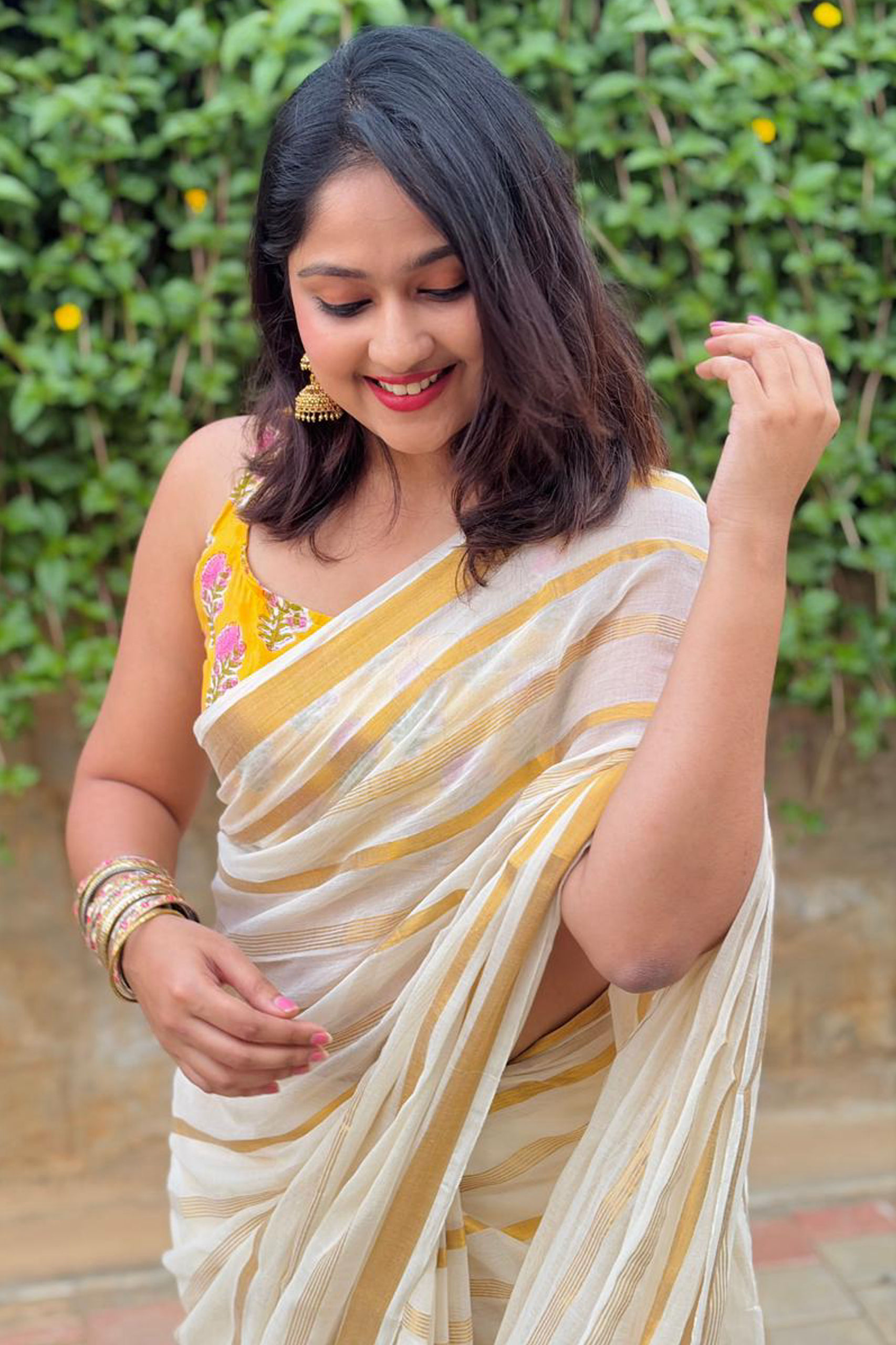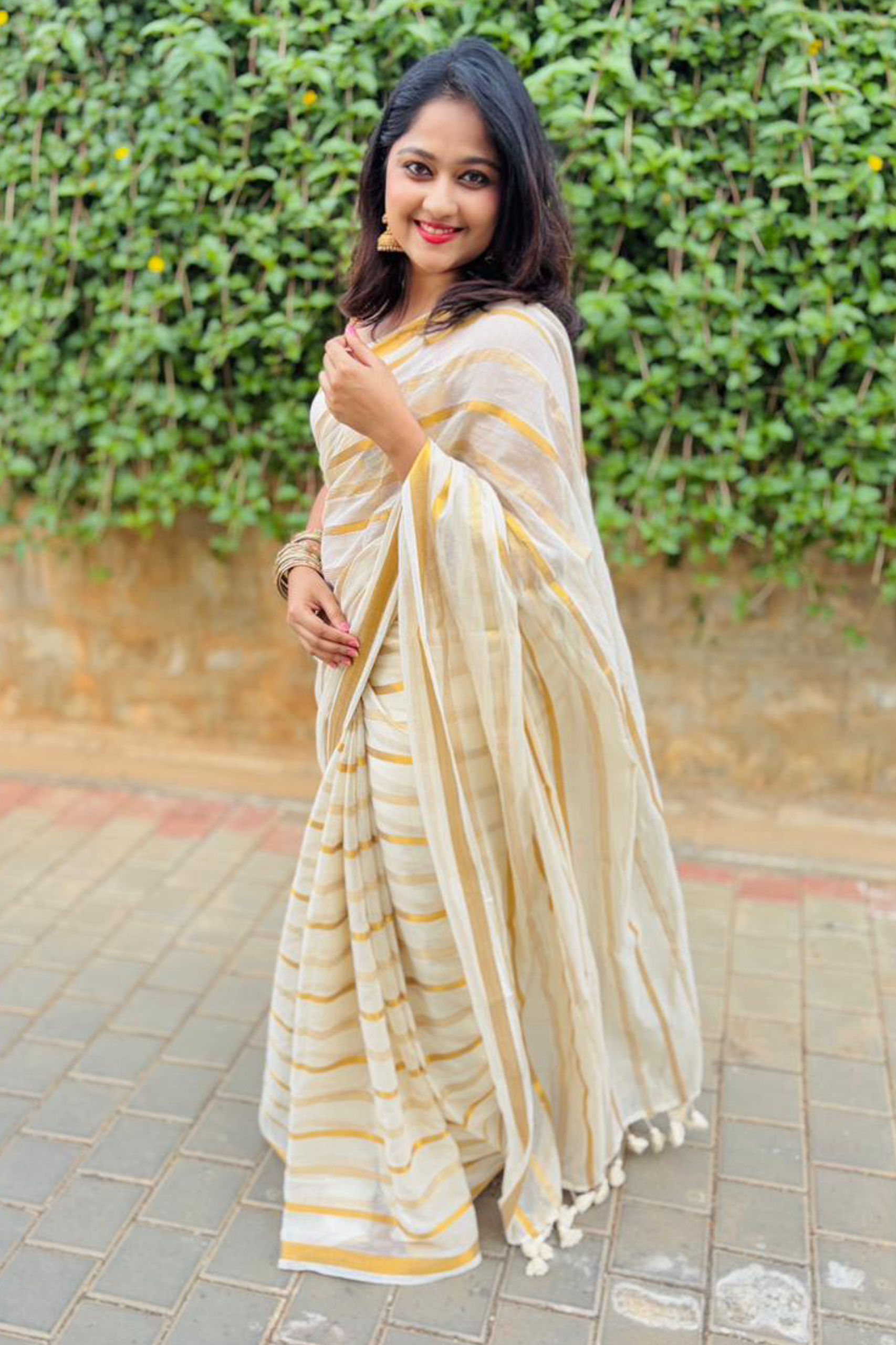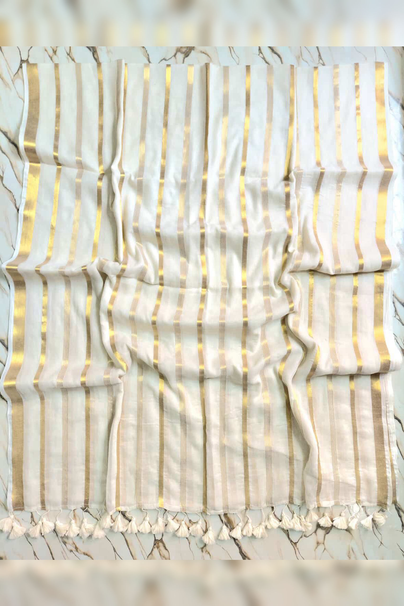 Golden stripe Mul cotton saree