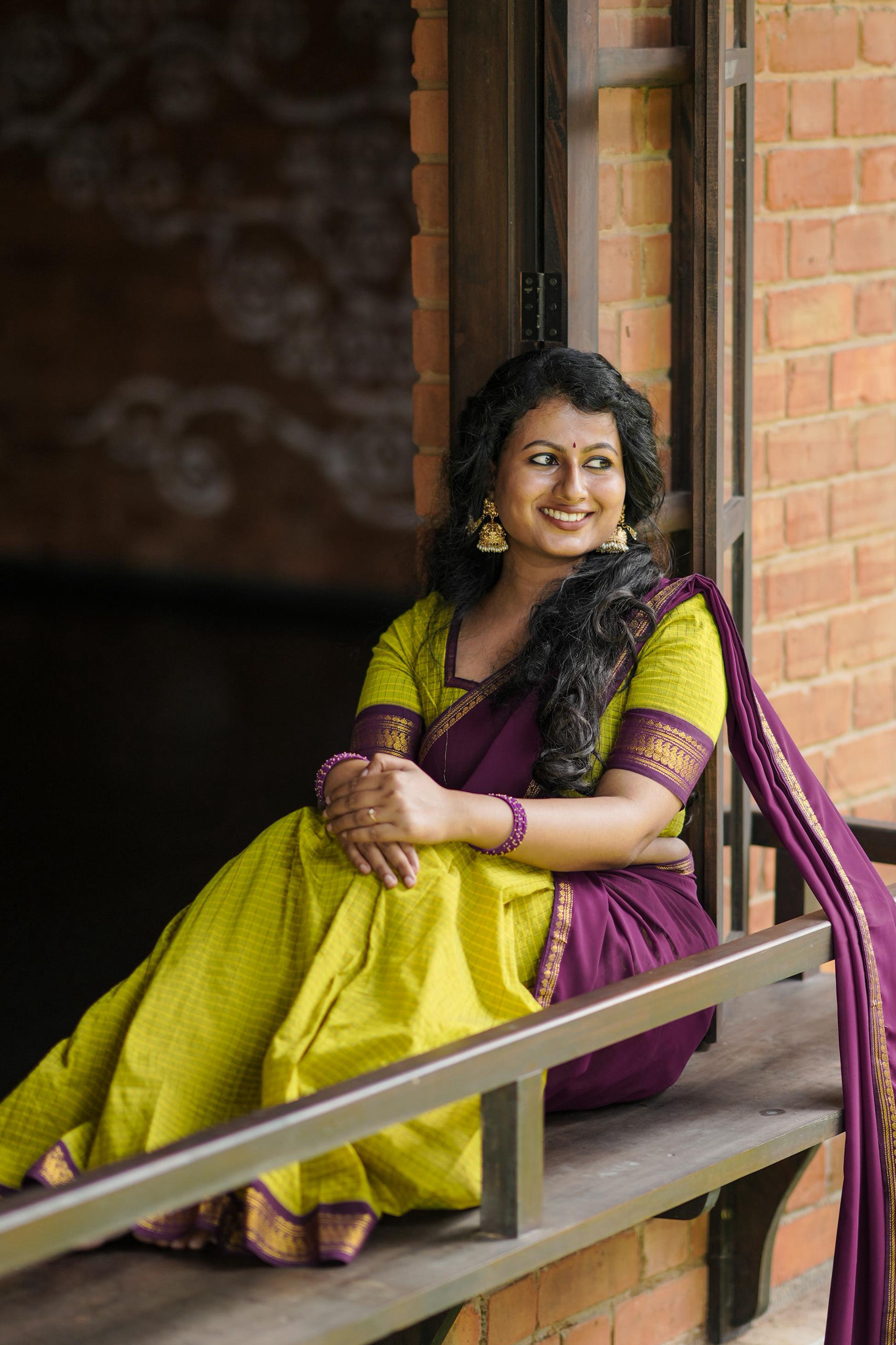 Lime Green and Deep Purple Kalyani Cotton Dhavani Set