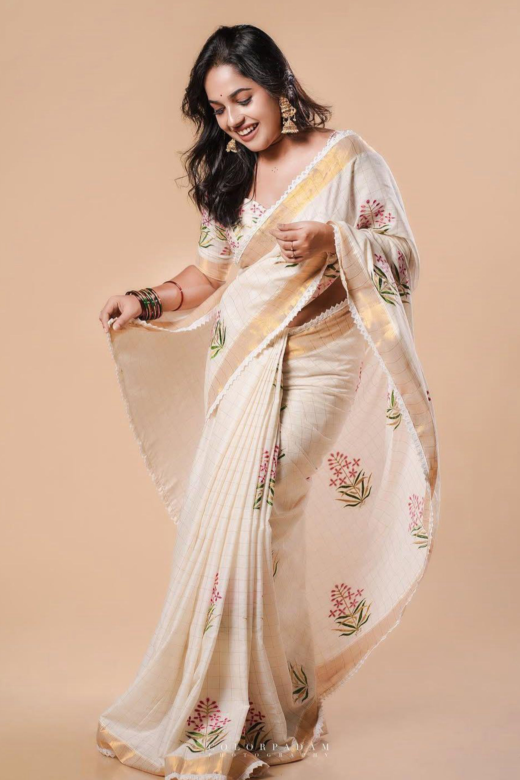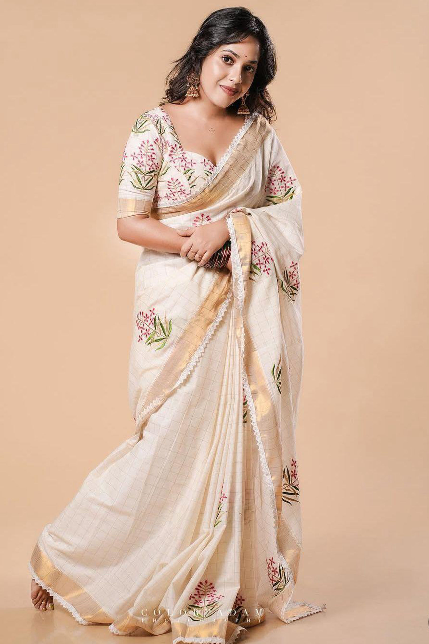 Kasavu Check Embroidery Saree