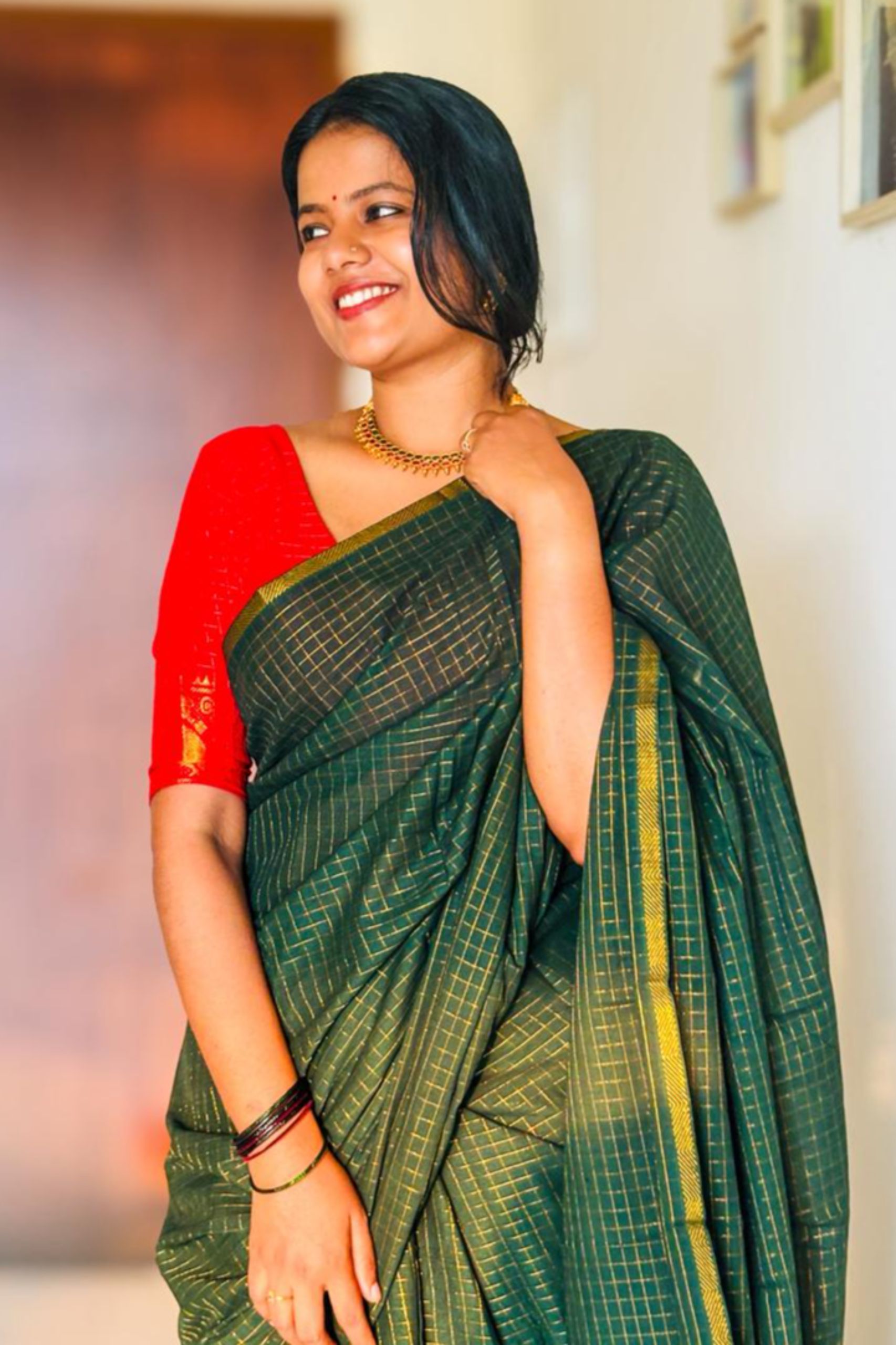 Madurai Sungudi Cotton Saree With Contrast Sungudi Blouse