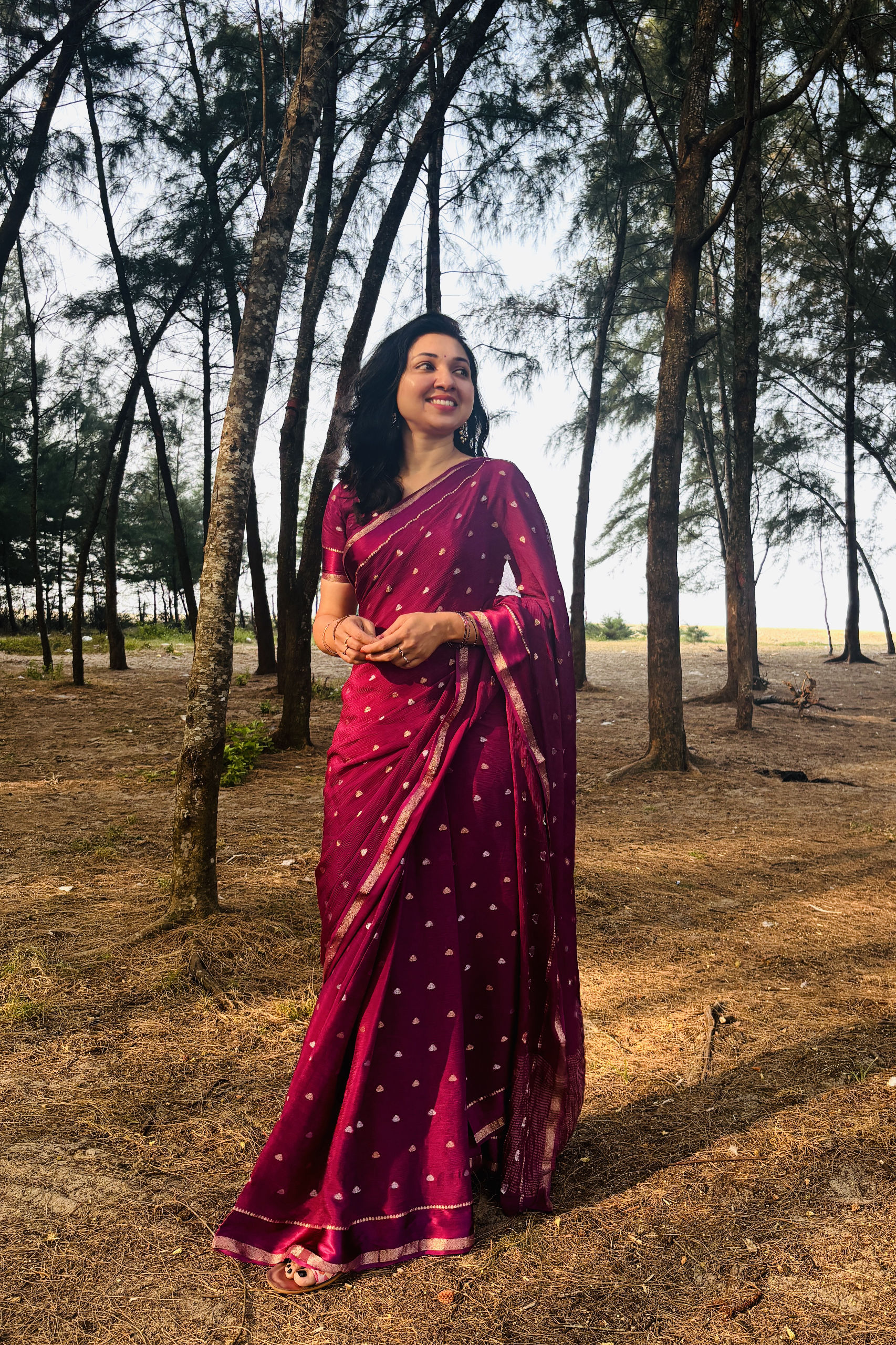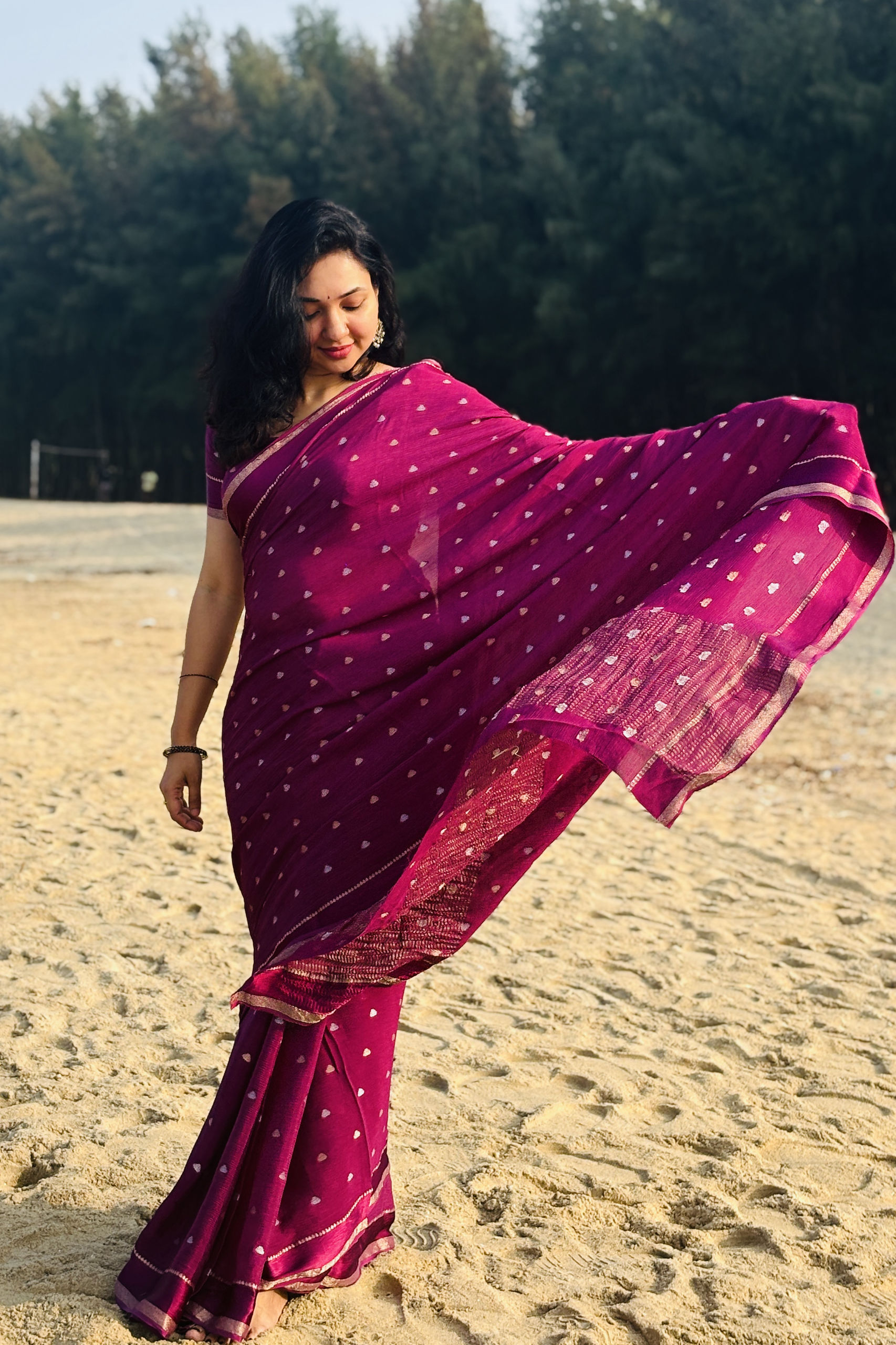 Viscose chinnon saree – Wine